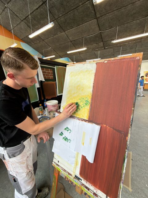 Heute probierten wir eine neue Technik: Wir legten eine Folie auf die Farbeund zogen sie anschließend wieder ab. Anschließend arbeiteten wir weiter ander Marmorierung. Dabei lernten wir mehrere interessante Verfahren kennen.Vorbereitet wurde eine Schablone bzw. ein Übertrag, welcher im Anschluss…