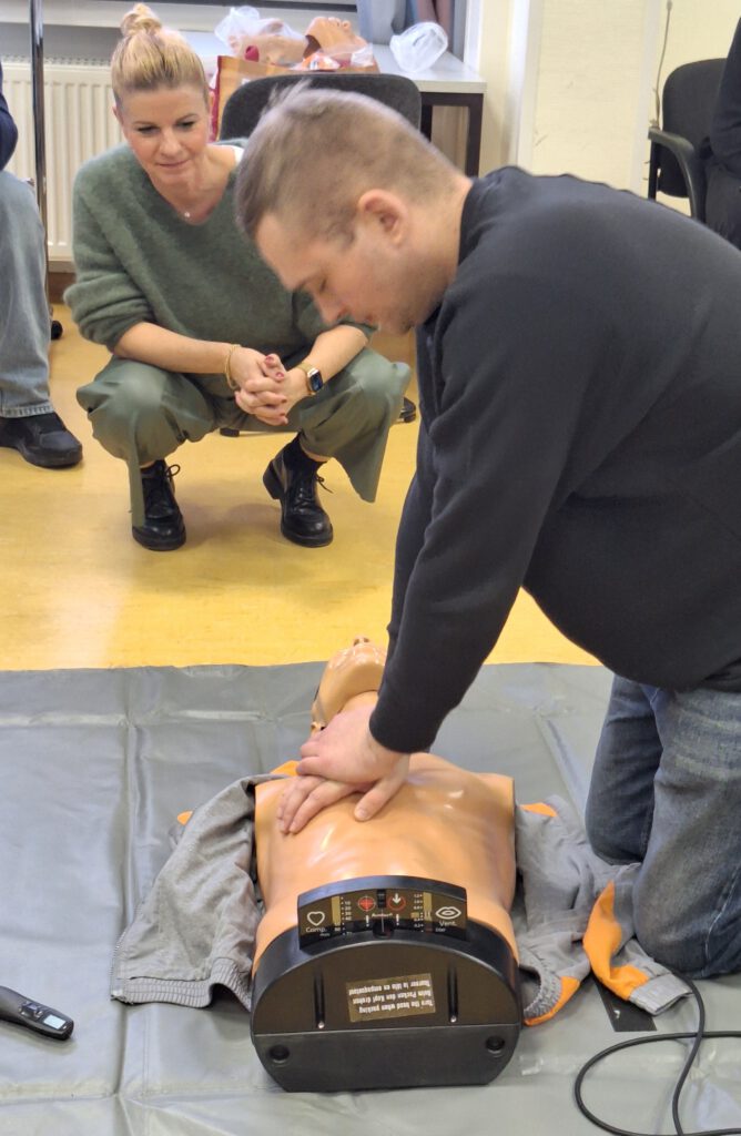 Schüler Erik B. übt am Reanimations-Dummie die Herz-Lungen-Wiederbelebung