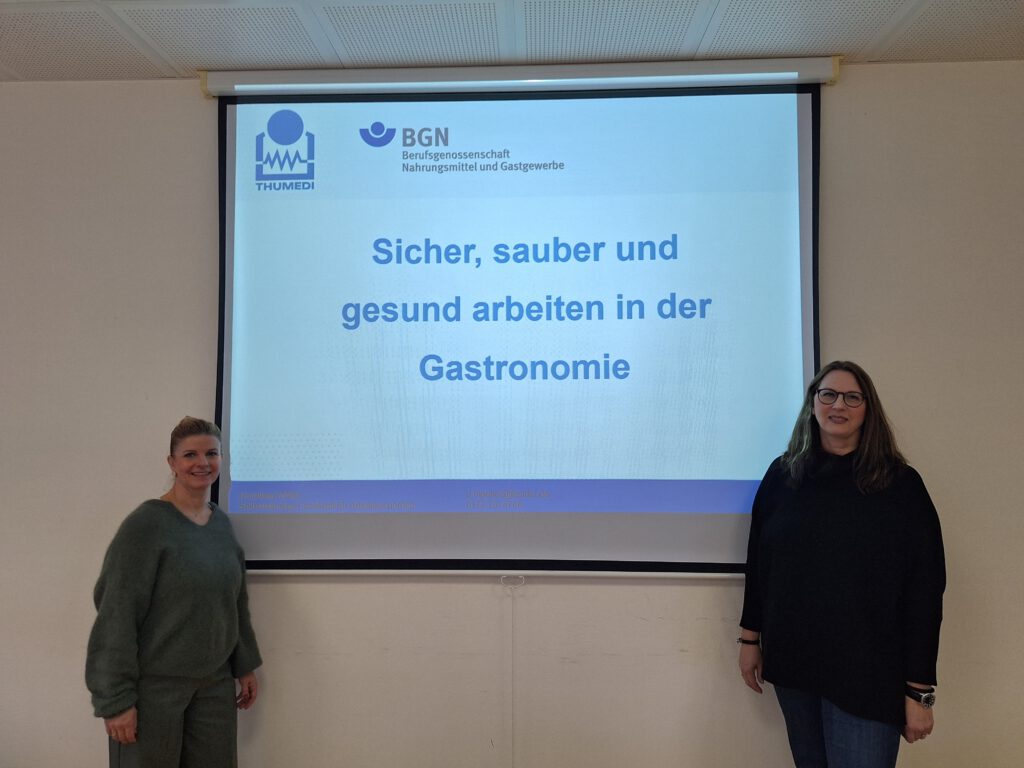 Als vorweihnachtliches Highlight gestalteten die Referentinnen Dorothee Möller und Nicole Rabiega ein abwechslungsreiches Programm aus Theorie- und Praxiseinheiten. Behandelt wurden unter anderem das richtige Heben und Tragen von Arbeitsmitteln, der Brandschutz, Erste-Hilfe-Maßnahmen sowie der sichere Umgang mit Schneidwerkzeugen. Einen besonderen Schwerpunkt bildete zudem das Thema „Service und Verkauf“, das im Rahmen des schulischen Pausenverkaufsprojekts regelmäßig praktisch umgesetzt wird.