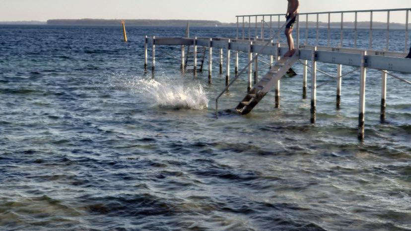 Auf der Heimfahrt haben ein paar von uns beschlossen, im Meer schwimmen zu gehen. Aktuelle Wassertemperatur ca. 10 Grad.