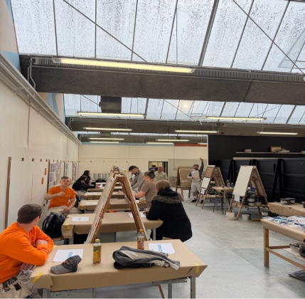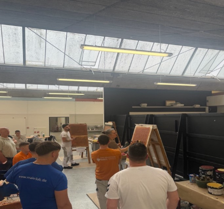 Um 12:00 Uhr gab es Mittagessen in der Kantine, wo wir gemeinsam aßen. Anschließend begannen wir um 12:30 Uhr damit, die Fugen auszumalen.