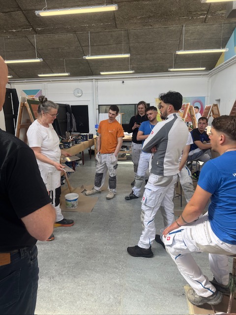 Am 14.04.2026 begann der Schultag um 7:20 Uhr. Vor Ort setzten wir die Arbeiten an der Ziegelsteinoptik fort und starteten ein weiteres Projekt zur Darstellung einer Granitoptik.