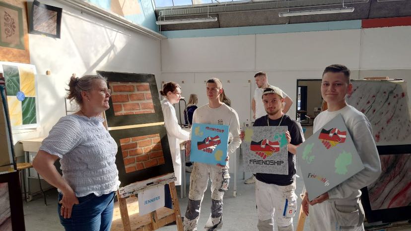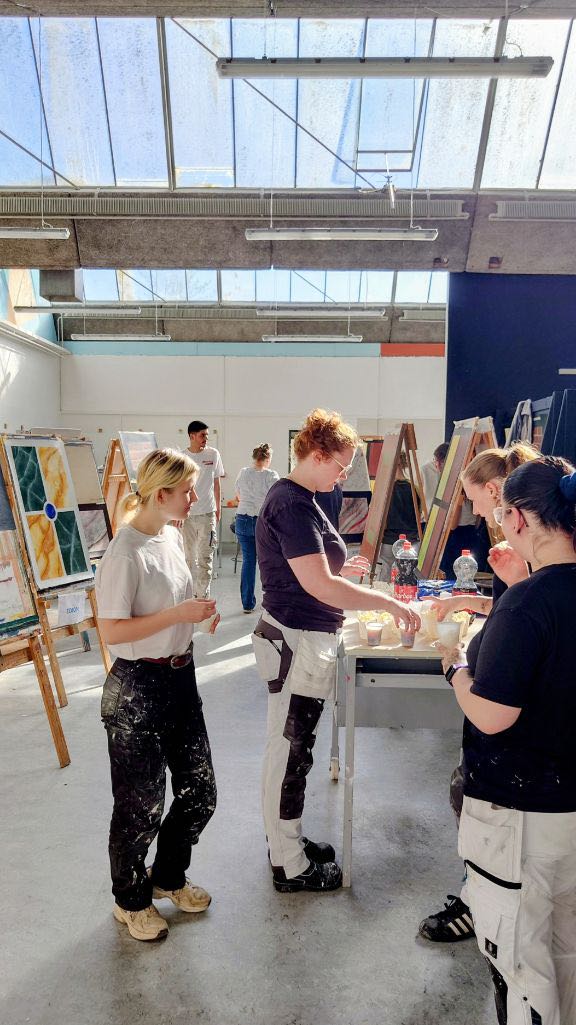 Im Laufe des Tages kamen verschiedene Lehrer und Klassen zu uns und wir haben gemeinsam die Arbeiten angeschaut. Es wurde darüber gesprochen, was gut geklappt hat, was vielleicht nicht so gut funktioniert hat und wie wir gearbeitet haben. Besonders haben wir uns über die verschiedenen Techniken ausgetauscht, da jeder seine eigene Herangehensweise hat.