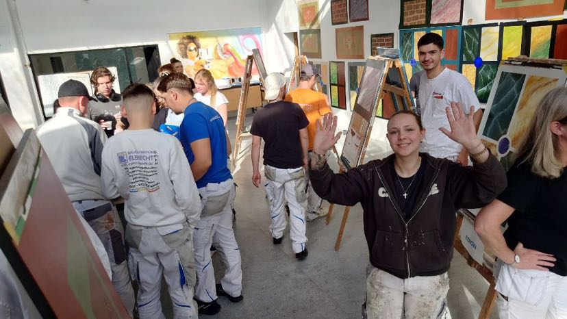 Heute war ein sehr spannender Tag. Wir haben alle Sachen für eine Ausstellung in unserem Praxisraum vorbereitet. Dafür haben wir den Klassenraum noch einmal sauber gemacht, unsere Staffeleien ordentlich aufgestellt und alles weggeräumt. Danach haben wir unsere Bilder an den Wände und auf den Staffeleien befestigt.