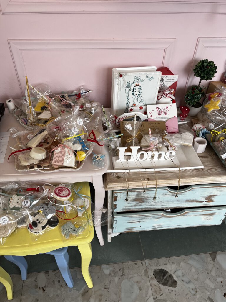 Ich arbeite bei Ergani Crafts auf Kreta, einem Handmade-Dekorationsunternehmen. Sie haben sich auf Hochzeiten, Taufen und größere Veranstaltungen spezialisiert.