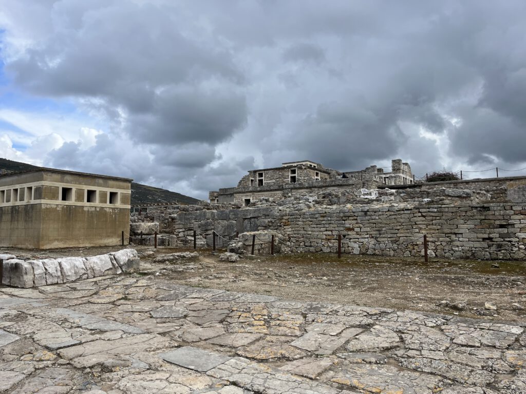 Knossos ist eine antike Palastanlage auf Kreta und war das wichtigste Zentrum der minoischen Kultur (ca. 2000–1400 v. Chr.). Der Palast war keine Burg, sondern ein großer Gebäudekomplex mit vielen Räumen, Höfen und Gängen. Er diente als politisches, wirtschaftliches und religiöses Zentrum.