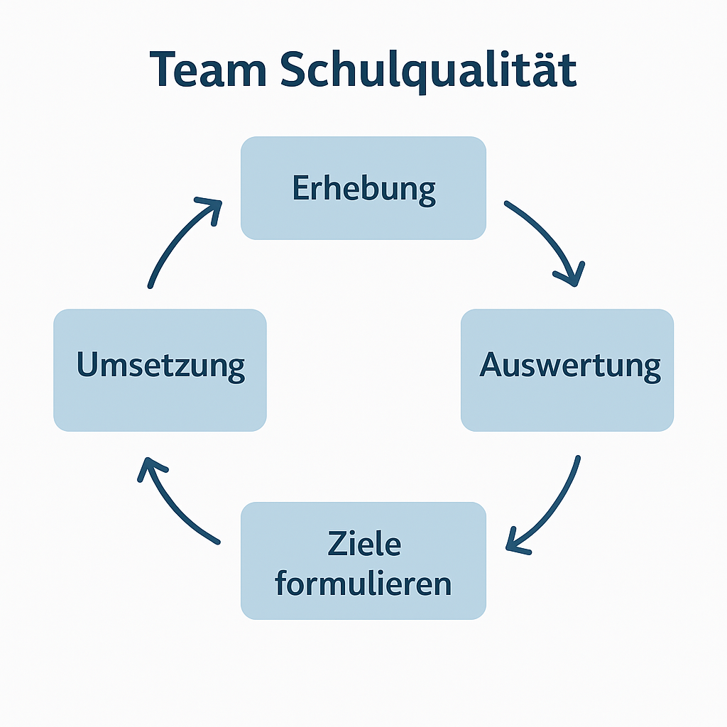 Im Sommer 2025 hat sich aus der bisherigen Projektgruppe „Erfolge sichtbar machen“ das neue Team Schulqualität gebildet. Dieses Team versteht sich als Förderer einer offenen Kultur, in der Lehrkräfte, Lernende und Partner gemeinsam an Qualität, für eine Schule, die lernt, wächst und Zukunft gestaltet, arbeiten. Das Ziel ist es, unsere Schule auf allen Ebenen als lernende Organisation aus Basis von Transparenz und Vertrauen weiterzuentwickeln.