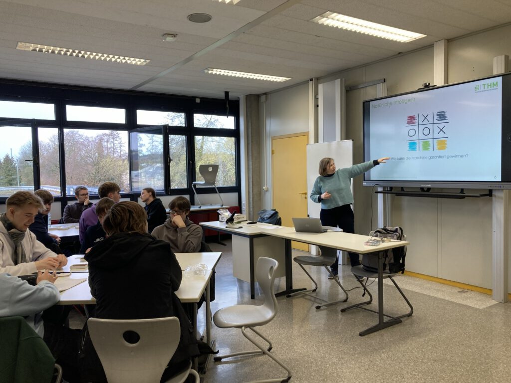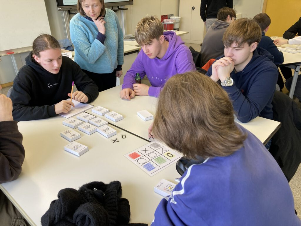 In einer Holzkiste befinden sich 304 Streichholzschachteln, die mit mehreren hundert Bügelperlen in verschiedenen Farben gefüllt sind – MENACE. MENACE kann Tic, Tac, Toe spielen und will gewinnen. Dafür lernt das Matchbox Educable Noughts And Crosses Engine-System bei jedem Spiel etwas dazu – egal, ob Sieg, Niederlage oder Unentschieden. MENACE ist also eine Art analoge Künstliche Intelligenz. Wie genau das so genannte „Reinforcement Learning“ von MENACE funktioniert, erfuhren die Schülerinnen und Schüler der Klassen 11FO3 und 12FO3 mit dem Schwerpunkt Informationstechnik in einem Workshop bei der Mathematik-Professorin Dr. Linda Beukemann von der Technischen Hochschule Mittelhessen (THM), die im Rahmen des „Rent A Prof“-Programms am 13.02.2026 zu Gast an der Beruflichen Schule Oberhessen in Nidda war. In Kleingruppen spielten die Jugendlichen Tic, Tac, Toe gegen eine vereinfachte MENACE-Variante mit weniger Streichholzschachteln und Bügelperlen. Sie testeten dabei verschiedene Belohnungssysteme und Spielstrategien mit dem Ziel, eine perfekte Maschine zu erhalten. Anschließend konnten die Schülerinnen und Schüler ihr Spielkönnen am schuleigenen großen MENACE-System zeigen und erhielten eine Einführung in die dazugehörige App, die die Suche nach den passenden Streichholzschachteln erheblich beschleunigt. Dadurch wird einiges an Zeit gespart, die man für weitere Trainingsspiele verwenden kann 😊