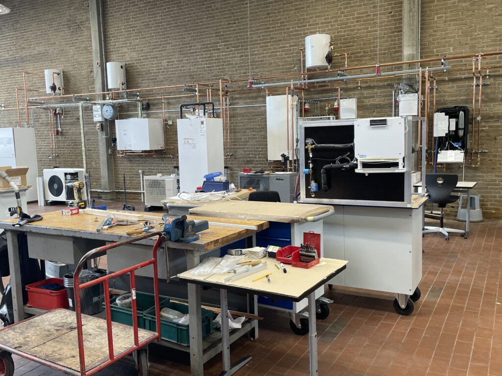 Im Bereich Anlagenmechanik stehen unter anderem verschiedene Heizsysteme – von Öl- und Gasheizungen bis hin zu Wärmepumpen – zur Verfügung, an denen die Schüler während des Unterrichts arbeiten.